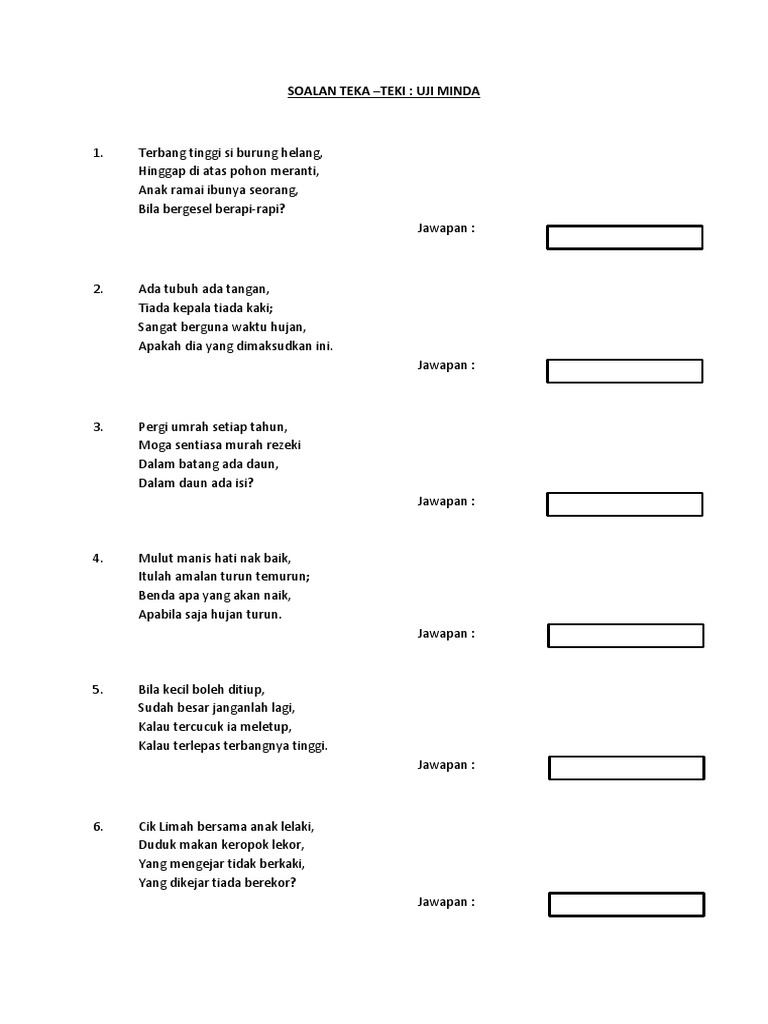 Soalan Teka Teki. Kompilasi soalan teka teki susah & lawak. Kadang kala ianya boleh jadi suatu yang menghiburkan dan boleh juga jadi .