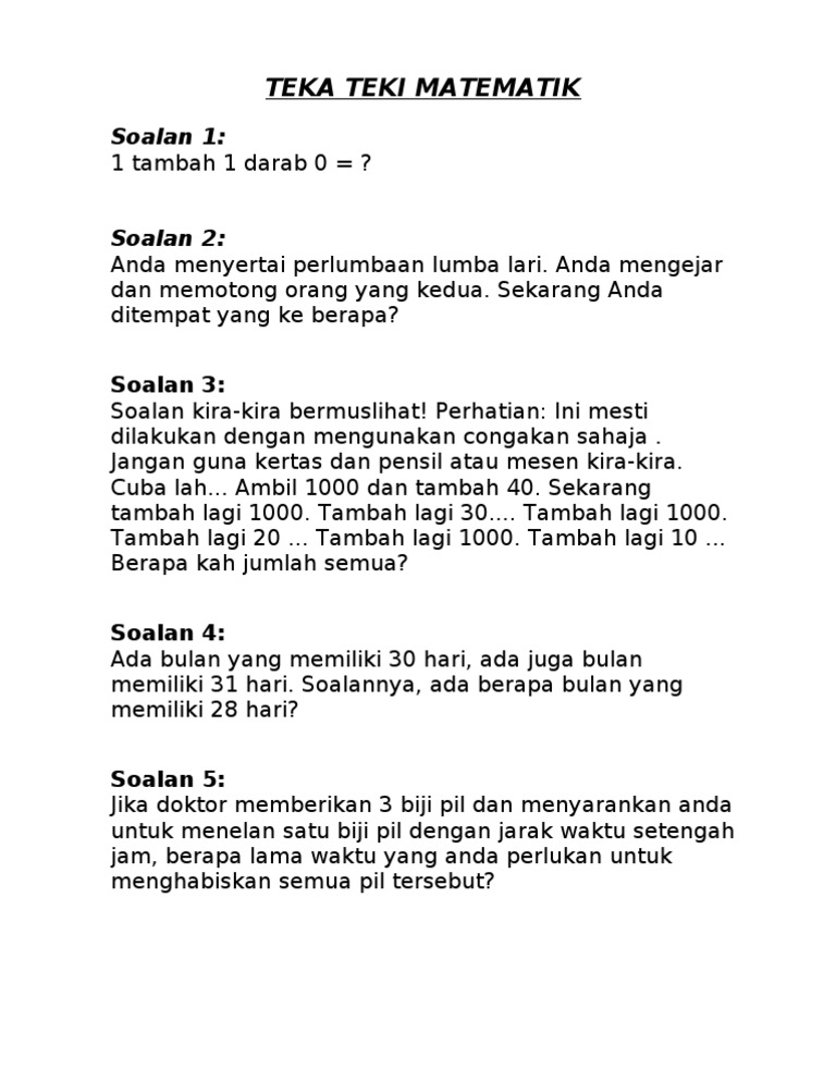 Soalan teka teki bodoh, soalan teka teki matematik, soalan teka teki lawak, soalan teka teki paling susah di dunia dan jawapan, soalan teka teki, soalan teka silang kata, soalan teka teki paling susah, soalan teka teki matematik, soalan teka teki lawak dan jawaban, soalan teka teki iq,